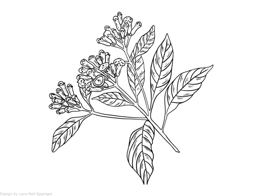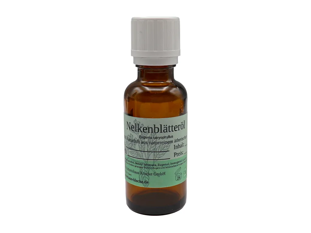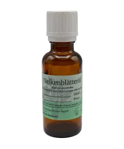 Das ätherische Nelkenblätteröl wird aus den Blättern und Zweigspitzen des Gewürznelkenbaumes durch Wasserdampfdestillation gewonnen. Der Gewürznelkenbaum ist auf den Philippinen beheimatet und kommt ursprünglich aus einer vulkanischen Inselkette westlich von Neu-Guinea. Das ätherische Öl aus Nelkenblättern hat einen etwas andersartigen Geruch, als der aus Nelkenknospen – Er duftet mehr grün, krautig, würzig, warm und kräftig. Es wirkt wärmend und anregend da es einen hohen Phenolgehalt besitzt. Das ätherische Nelkenblätteröl harmoniert gut mit Basilikum, Cajeput, Eukalyptus, Fenchel, Ingwer, Iris, Kardamom, Koriander, Kümmel, Sternanis, Zimt, Orange und Mandarine.