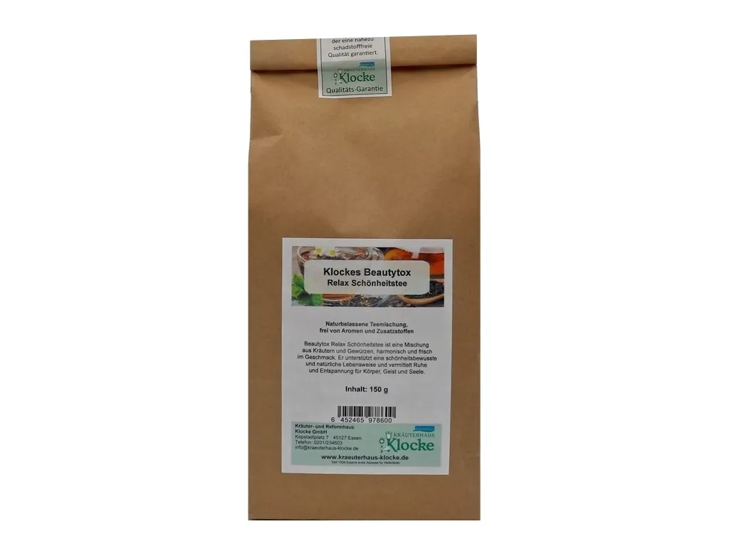 Beautytox Relax Schönheitstee ist eine Mischung aus Kräutern und Gewürzen, harmonisch und frisch im Geschmack. Er unterstützt eine schönheitsbewusste und natürliche Lebensweise und vermittelt Ruhe und Entspannung für Körper, Geist und Seele.