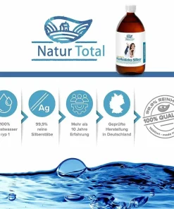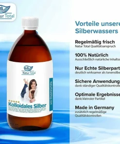 Das kolloidale Silber von Natur Total überzeugt durch herausragende Qualität, wissenschaftliche Präzision und strenge Herstellungsrichtlinien. Mit einem Silbergehalt von 50 PPM und einer einzigartigen Kombination aus reinstem Wasser und reinem Silber ist dieses Produkt die ideale Wahl für alle, die auf höchste Reinheit und Effektivität Wert legen.