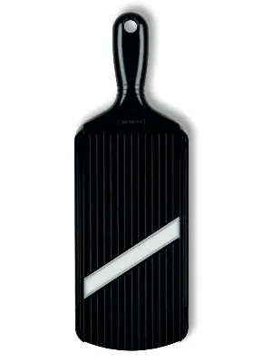 Schwarzer Universalhobel mit doppelseitigem Schliff, Keramikklinge, und Fingerschutz.