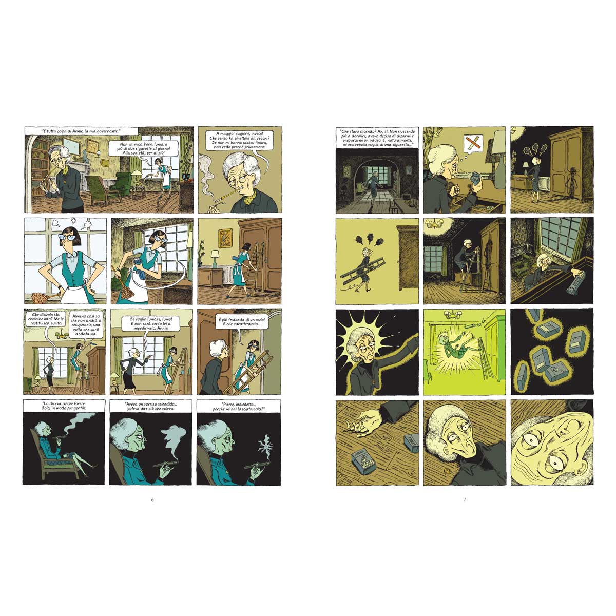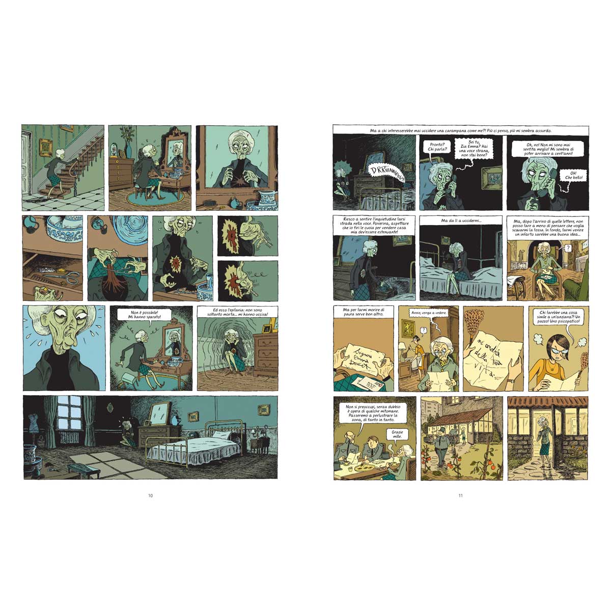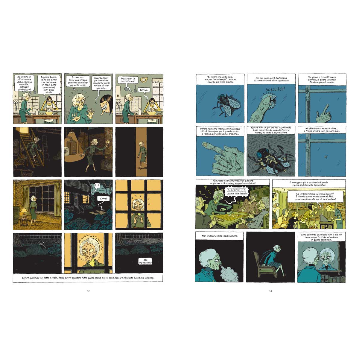 Hubert e Zanzim, prima di creare insieme l’indimenticabile Pelle d’uomo, avevano già collaborato sulla storia di Emma, anziana vedova che un mattino si risveglia… morta. Tra riflessioni sul senso della vita, il mistero di chi le abbia sparato, i ricordi dell’amatissimo marito Pierre, portatole via da un misterioso incidente, e l’esigenza di capire cosa fare del resto della propria non-vita, questa storia è allo stesso tempo lieve e intensa, giocosa e profonda, di genere e sui generis, come nello stile perfetto e saggio di Hubert.