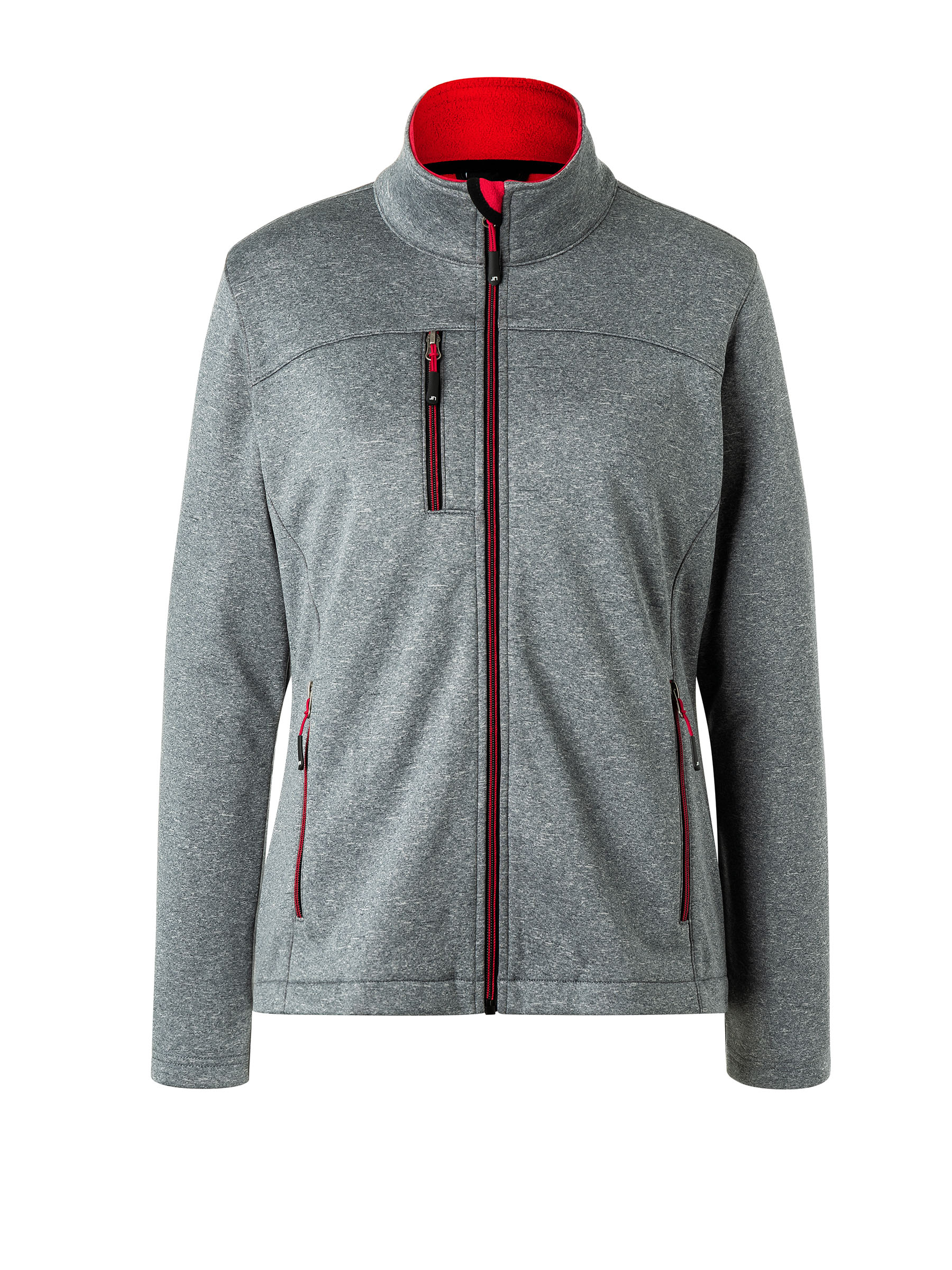 Diese modische, leicht taillierte Softshell Jacke aus angenehm weichem 2 Lagen Softshellmaterial hat eine Fleece-Innenseite in Kontrastfarbe. Der Frontreißverschluss ist durchgehend hinterlegt mit einem Kinnschutz im Stehkragen.