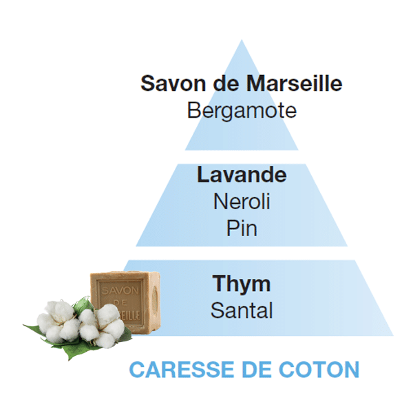 Frische, Reinheit und Natürlichkeit – ein Duft wie frische Wäsche! Bergamotte, Marseiller Seife verbreiten zusammen mit Lavendel, Thymian und Sandelholz ein Frischegefühl.