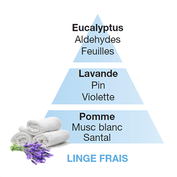 Ein Duft wie frisch gewaschene Wäsche! Die Frische von Eukalyptus und Lavendel vereint mit einem Hauch von Pinie, weißem Moschus und Sandelholz.