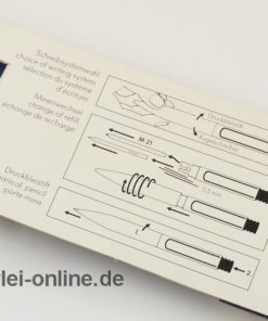 Schreibgeräte sollten außerhalb der Reichweite von kleinen Kindern aufbewahrt werden, da Kleinteile (z. B. Kappen, Patronen oder Mechanismen) verschluckt werden könnten.