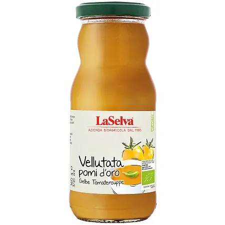 100 % gelbe Tomaten aus Italien, verfeinert mit einer Kombination aus Knoblauch, Zwiebeln und Olivenöl. Diese fruchtige, gelbe Tomatensuppe in der Glasflasche bringt Abwechslung und Farbe auf den Teller. Einfach erwärmen und genießen.