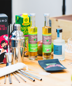 Aus unserem exklusiven Cocktail-Box Angebot können Sie sich eine mit viel Kreativität und Liebe zusammengestellte All-in-One Cocktail-Box aussuchen und online bestellen. Sie bekommen die All-in-One Cocktail-Box direkt nach Hause geliefert. Diese enthält alles, was man für einen exklusiven und erlebnisreichen Cocktail-Workshop benötigt. Unser virtueller Cocktail-Workshop basiert auf einer Video-Aufzeichnung und ist über einen von uns bereitgestellten Media-Link abrufbar. Sie können nun selbst bestimmen, wann und wo immer Ihr einzigartiges Cocktail-Erlebnis starten soll.