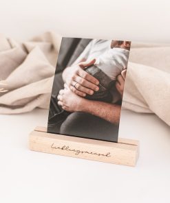 Mit diesem Kartenhalter setzt du Fotos, Postkarten, Tisch- oder Menükarten perfekt in Szene. Der Fotohalter ist mit dem Wort “Lieblingsmensch” graviert.