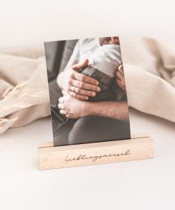 Mit diesem Kartenhalter setzt du Fotos, Postkarten, Tisch- oder Menükarten perfekt in Szene. Der Fotohalter ist mit dem Wort “Lieblingsmensch” graviert.