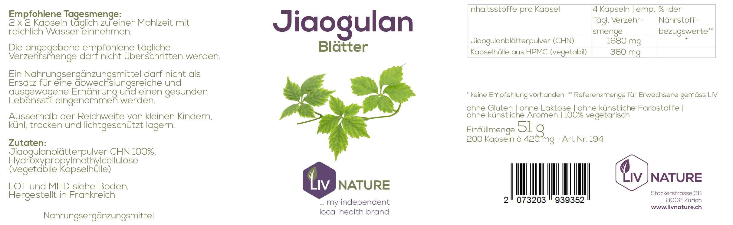 Auch in anderen Packungsgrössen verfügbar: LivNature Jiaogulan – Gynostemma pentaph. 500mg Kps 100Stk