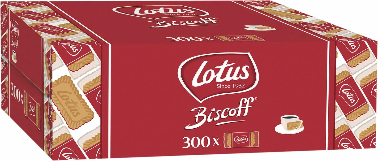 Ein Pack Lotus Biscoff Karamellgebäck enthält 300 einzeln verpackte Gebäckstücke.