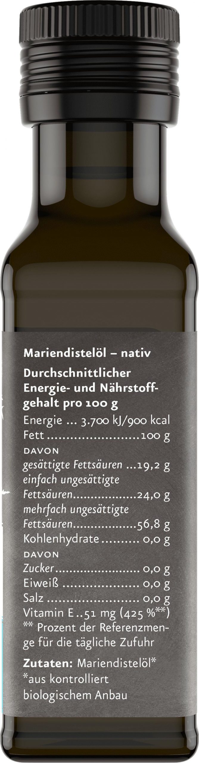 Zutaten: Mariendistelöl aus kontrolliert biologischem Anbau