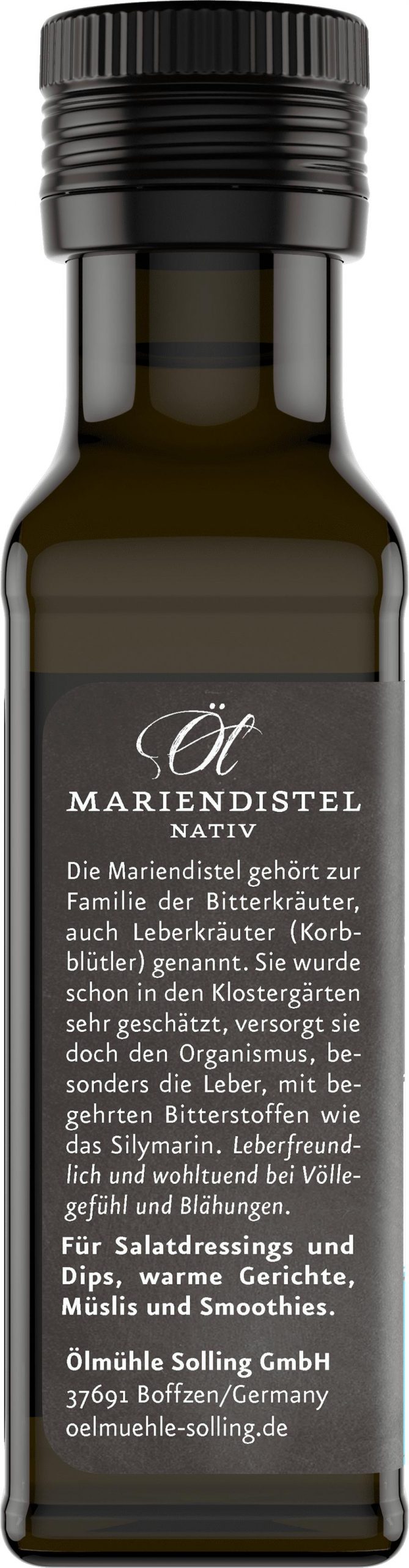 Die Mariendistel ist ein typisches Bitterkraut und wurde als „Leberpflanze“ schon in Klostergärten angebaut. Mariendistelöl ist reich an wohltuenden und bekömmlichen Bitterstoffen.