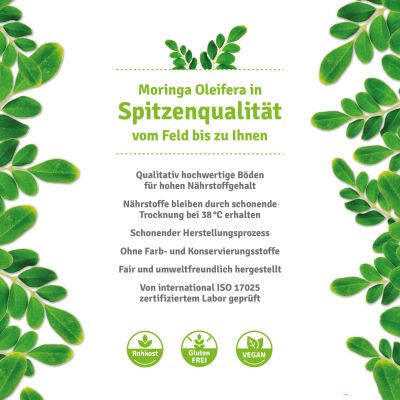 Es können Salate und alle Arten von Gemüse mit ein paar Tropfen Moringaöl garniert werden. Ebenfalls geeignet als gesunde Marinade für z.B. Fleischgerichte.