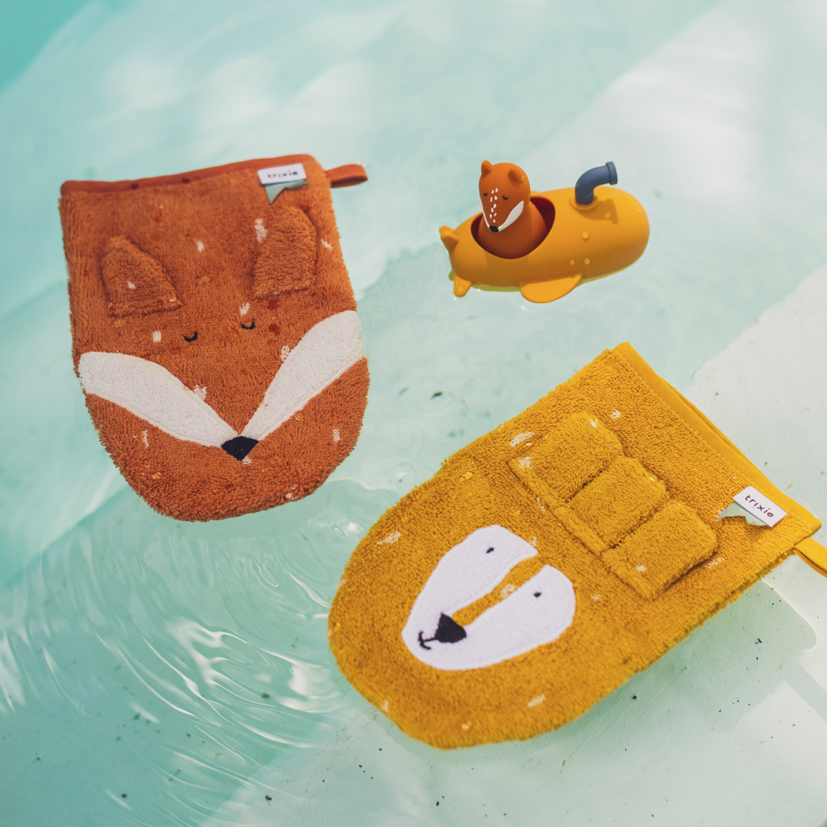 Zeit zum Waschen! Passend zu den Kapuzenhandtüchern gibt es die süßen Tiere auch als Waschlappen. Da diese aus 100% Bio-Baumwolle bestehen, sind sie besonders weich auf der Haut.