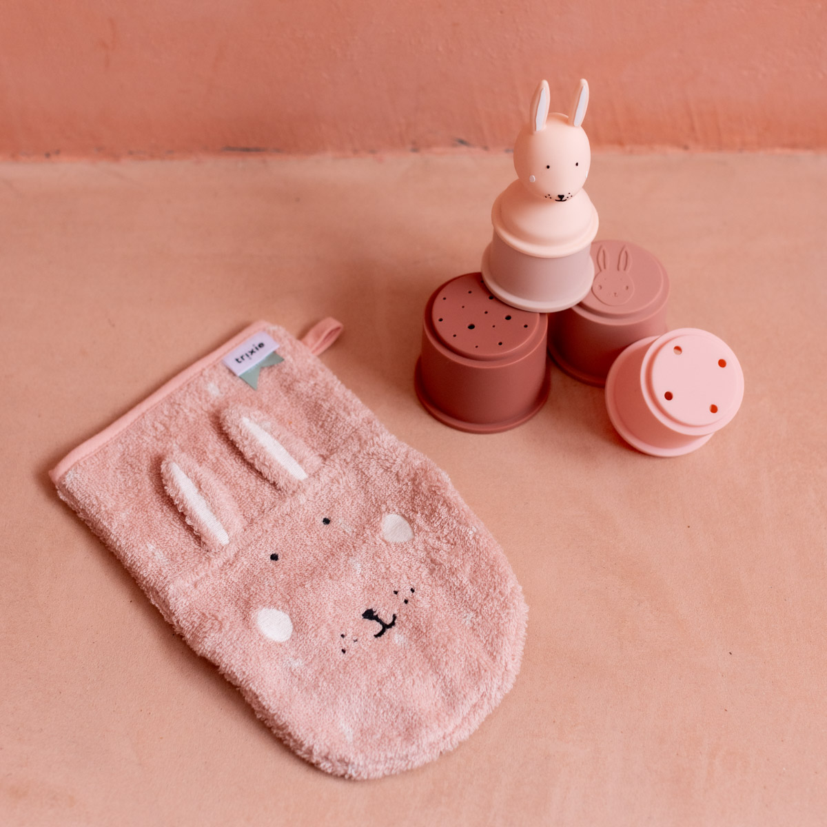Waschhandschuhe | 2 Stück | Motiv: Mrs. Cat (Katze) & Mrs. Rabbit (Hase) | 20 x 14 x 0,5 cm | 100% Bio-Baumwolle | Altersempfehlung ab 0 Monaten | ohne Dekoration