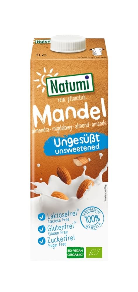 Köstlicher Mandeldrink ohne zugesetztem Zucker. Als purer Trinkgenuss, fürs Müsli, zum Kochen und Backen.