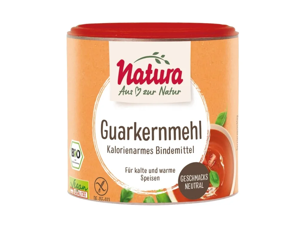 Guarkernmehl wird aus dem tropischen Guarstrauch gewonnen. Es eignet sich hervorragend als natürlicher Ersatz von Stärkemehlen, Eigelb oder anderen Bindemitteln zum Zubereiten von Soßen, Dips und Suppen, Gemüse- und Fleischgerichten, eifreien Aufläufen, Desserts, Fruchtmus und Kaltschalen, Brot und Backwaren (auch glutenfrei).