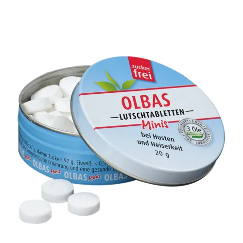 Olbas Minis Lutschtabletten zuckerfrei – erfrischend für Hals und Rachen, dabei wohlschmeckend und nicht zu süß durch das Süßungsmittel ISOMALT.