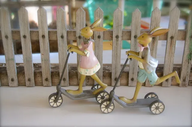 Diese beiden Hasen machen richtig gute Laune beim Dekorieren einer Ostertafel.
