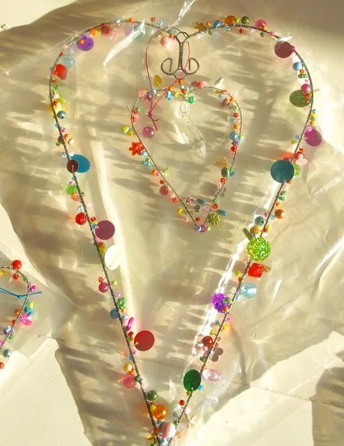 Der Kristall in der Mitte des kleinen Herzens erzeugt Regenbogenlicht wenn die Sonne drauf scheint.