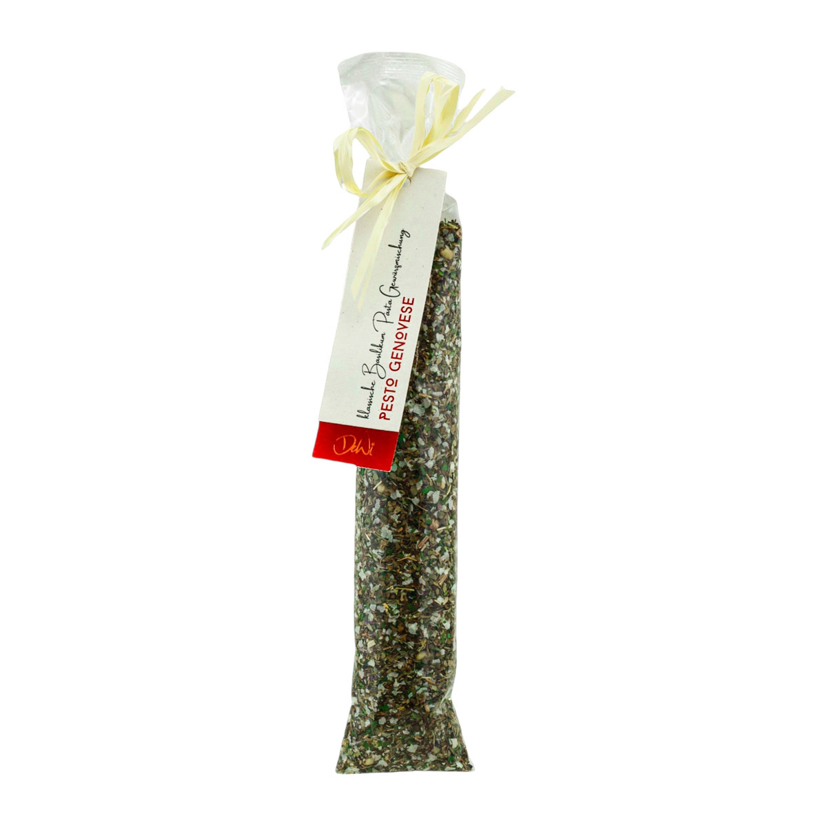 Die Tüte, welche mit einem leckeren “Pesto Genovese” Gewürz gefüllt ist, eignet sich hervorragend als Ergänzung zu einem Geschenk, als Teil eines Feinkost-Geschenkes oder als kleines Mitbringsel! Ein echter Hingucker!