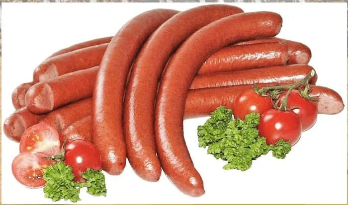 Nach Art einer Rindswurst.