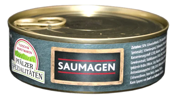 Die Füllung besteht aus Schweinefleisch, Wurstbrät und Kartoffeln. Gebratener Saumagen und Brot war das Leibgericht von Ex-Bundeskanzler Helmut Kohl.