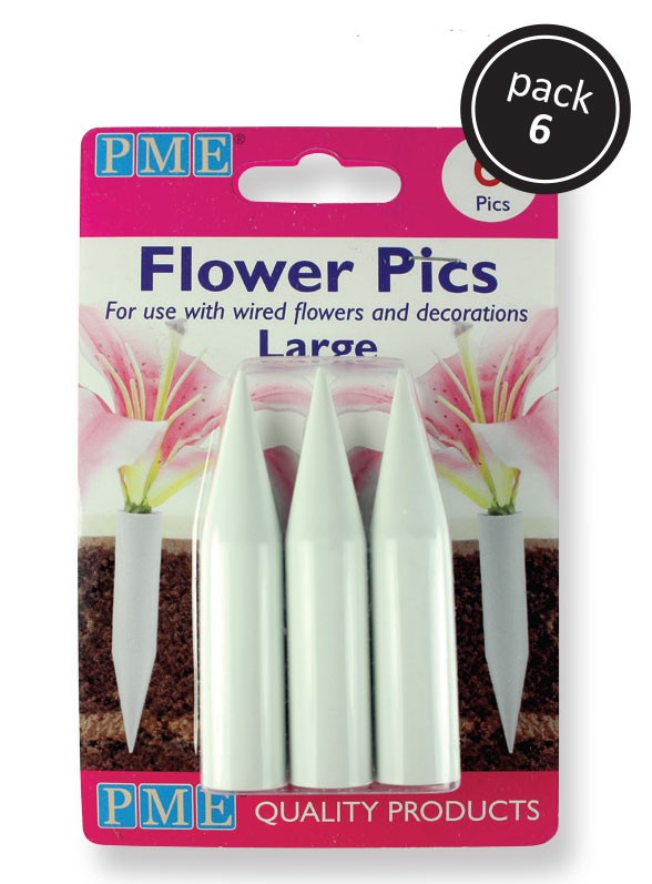 Die Zuckerblumen Spitzen (Flower Spikes) sind kleine Kunststoff Behälter, in denen Du Blumen und kleine Blumengestecke in Deine Kuchen und Torten befestigen kannst. Durch den Einsatz der Blumenhalter wird die Torte beim Einsatz von echten Blumen geschützt.