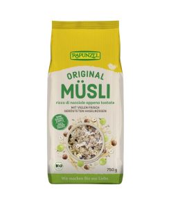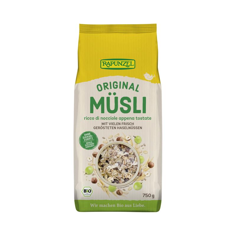 Damit fing Bio-Müsli an: genieße den kernig-fruchtigen Müsli-Klassiker! Seit den Pionierjahren wird dieses Original mit unveränderter Rezeptur hergestellt. Damals wurde das Müsli noch in der Bauernhof-Küche im Allgäu sorgfältig von Hand gemischt. Auch wenn die Müslis heute maschinell abgefüllt und verpackt werden, die Rezeptur und die Sorgfalt bei der Herstellung sind geblieben. Vollwertige heimische Getreideflocken schenken langanhaltend Energie durch komplexe Kohlenhydrate. Herrlich knackige, frisch geröstete Haselnüsse enthalten viele wertvolle Pflanzenfette. Sonnenverwöhnte Sultaninen aus dem Rapunzel Türkei-Projekt machen unsere erste und nach wie vor beliebteste Müslikreation fruchtig-süß – und das ganz ohne Zusatz von Zucker (enthält von Natur aus Zucker). Die einfachen Dinge sind im Leben oft die Besten.