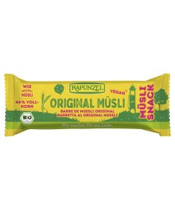 Rapunzel-Müsli für unterwegs: Der kernig-fruchtige Klassiker im Snack-Format enthält neben den vollwertigen Getreideflocken alle bewährten Zutaten des Rapunzel Original-Müslis, wie köstlich geröstete Haselnüsse, fruchtig süße Sultanien, Sonnenblumenkerne und Buchweizen. Durch die ausgewogene Kombination aus Reissirup und Ahornsirup hat der Müsli-Snack eine dezente Süße.