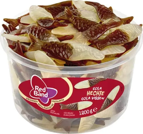 Red Band Cola Hechte sind köstliche Fruchtgummis in Hechtform mit intensivem Cola-Geschmack. Die Klarsichtdose enthält 100 Stück dieser liebevoll gestalteten Fischlein, die ein einzigartiges Geschmackserlebnis bieten. Mit ihrer Kombination aus süßem Fruchtgummi und authentischem Cola-Aroma sind sie der perfekte Snack für verschiedene Anlässe.