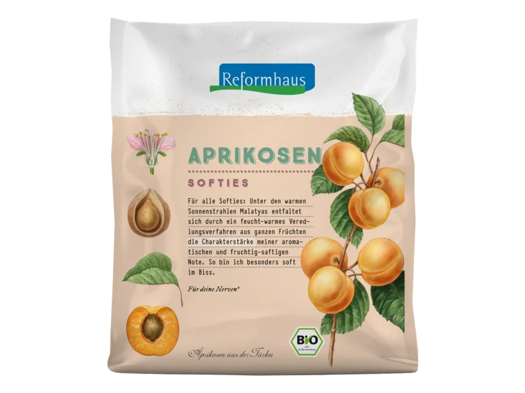 Perfekt als gesunder Snack, fördern die Verdauung auf natürliche Weise. Von Natur aus reich an Kalium, dem Spurenelement Kupfer und Ballaststoffen. Kalium trägt zur regulären Funktion der Muskeln und des Nervensystems bei. Um von dieser Wirkung zu profitieren, sollten Sie pro Tag 1 Portion (60g) Reformhaus Aprikosen soft verzehren.