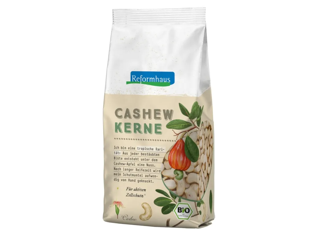Die Reformhaus Cashewkerne sind durch ihr feines Aroma ausgezeichnet. Die harten Schalen werden mit Handarbeit entfernt.