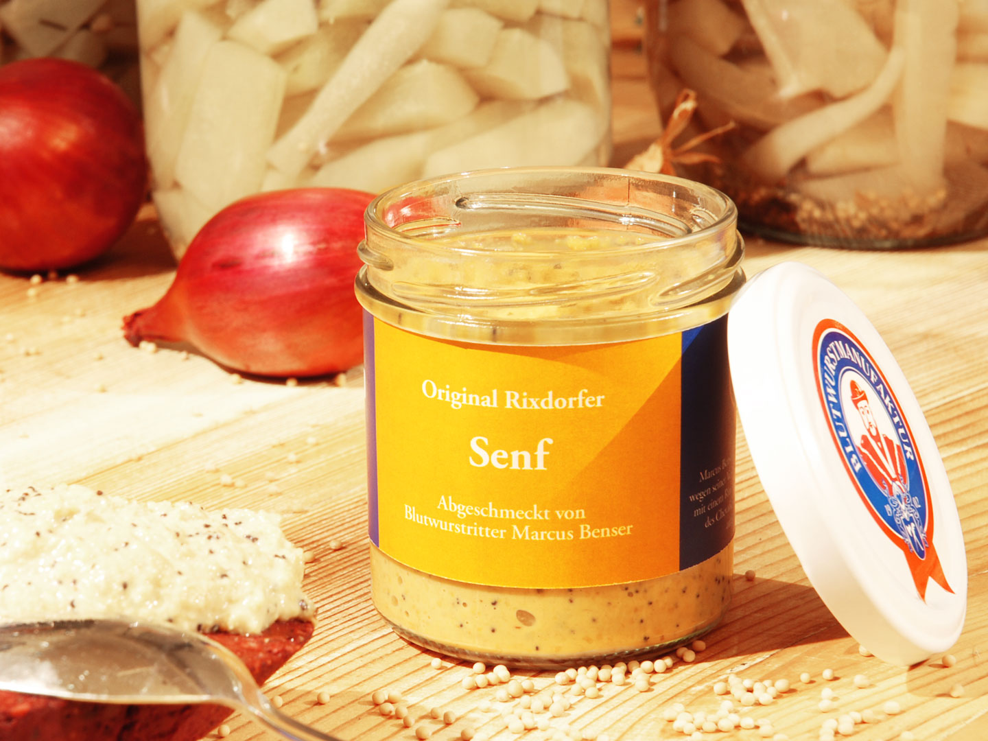 Ein hausgemachter und grober Senf aus unserer Fleischerei und ein ganz feines Senferlebnis. Um den besonderen mittelscharfen Geschmack zu erzielen, verarbeiten wir gelbe und braune Senfsaaten, die zum Teil nur grob gemahlen werden. Unser Rixdorfer Senf passt hervorragend zu allen unseren Wurstspezialitäten.