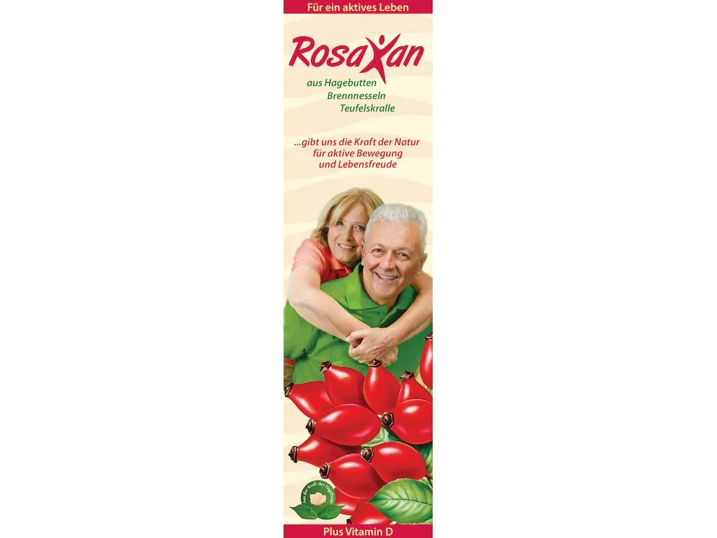 Rosaxan enthält eine wertvolle Kombination aus Hagebutte, Teufelskralle und Brennnesselblättern, die natürlicherweise Vitamin C und Mangan enthalten.