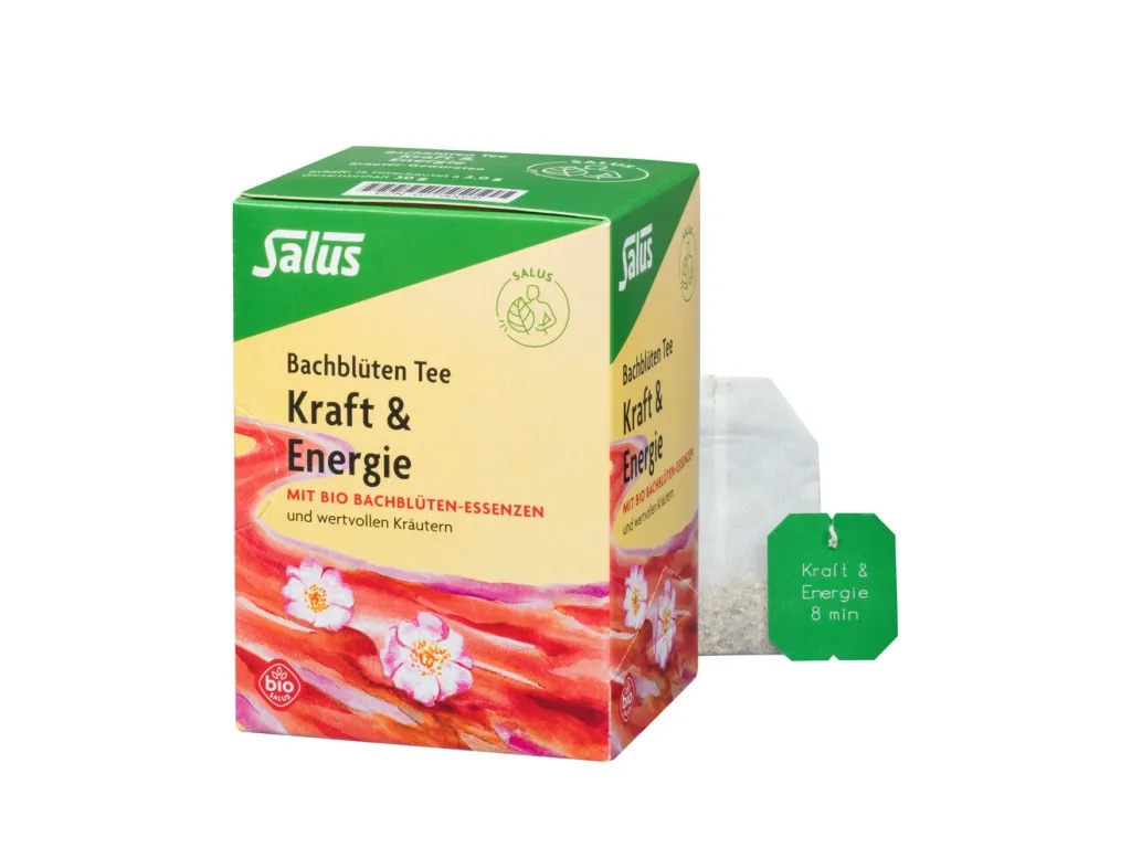 Für Salus Bachblüten Tee Kraft & Energie wurden verschiedene Kräuter sorgsam ausgesucht und mit den Bio Bachblüten-Essenzen Hornbeam, Olive, Wild Rose, Elm,