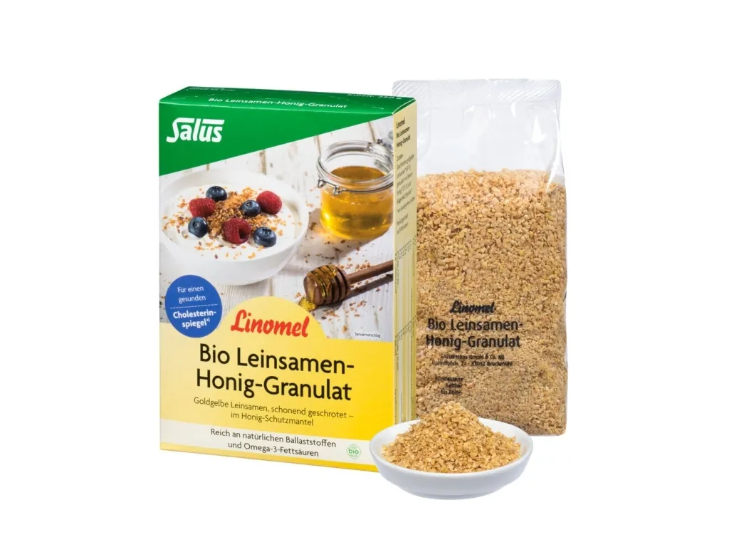 2-mal täglich 2 gehäufte Esslöffel (ca. 31 g) Linomel Leinsamen mit reichlich Flüssigkeit (Verhältnis 1 : 10) verzehren.