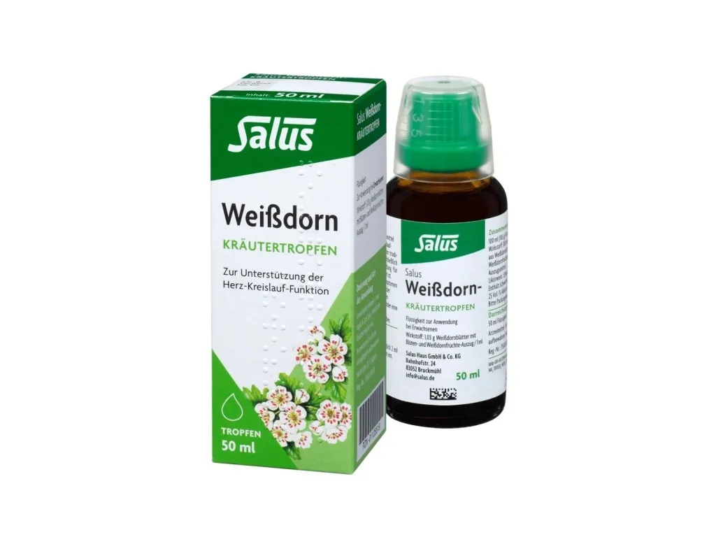 Dosierung: Erwachsene nehmen 3-mal täglich 2 ml SALUS WEISSDORN-KRÄUTERTROPFEN ein.