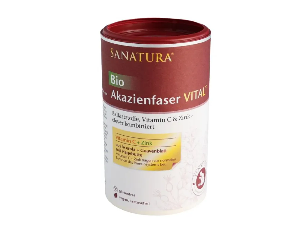 Unser clevere Kombi Sanatura Bio Akazienfaser Vital* ist eine echte Innovation, die dich mit wichtigen Ballaststoffen versorgt. Gleichzeitig enthält sie essenzielle Nährstoffe wie Vitamin C und Zink mit einer guten Bioverfügbarkeit – alles in kontrollierter Bio-Qualität.