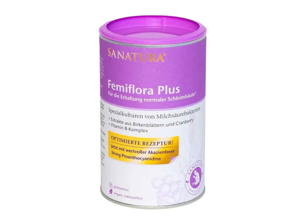 Sanatura Femiflora Plus ist eine besondere Kombination aus 12 Milliarden speziellen Milchsäurebakterien pro Tagesportion und dem Ballaststoff Bio Akazienfaser. Abgerundet mit wertvollem Birkenblätter- und Cranberry-Extrakt, die bei uns pro Tagesportion 36 mg Proanthocyanidine enthalten, und einem Vitamin B-Komplex, der deine Schleimhäute unterstützt und dein Immunsystem auf Trab bringt*, ist Sanatura Femiflora Plus perfekt für dein Wohlbefinden. Hergestellt in Deutschland