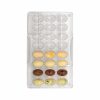 Die Form mit warmem Wasser auswaschen, gut trocknen und mit einem trockenen Tuch oder Watte polieren. Diese Schritte sind notwendig, damit Deine Schokoladenkreationen anschliessend schön glänzen. Danach können nun kleine Details in die Form gezeichnet werden. Dafür verwendest Du am besten temperierte Couverture welche einen Kontrast bildet zu der Couverture, mit welcher Du die Form anschliessend aufgiesst. Schau Dir am besten das Video an – egal welche Form Du giesst, das Vorgehen ist immer dasselbe.