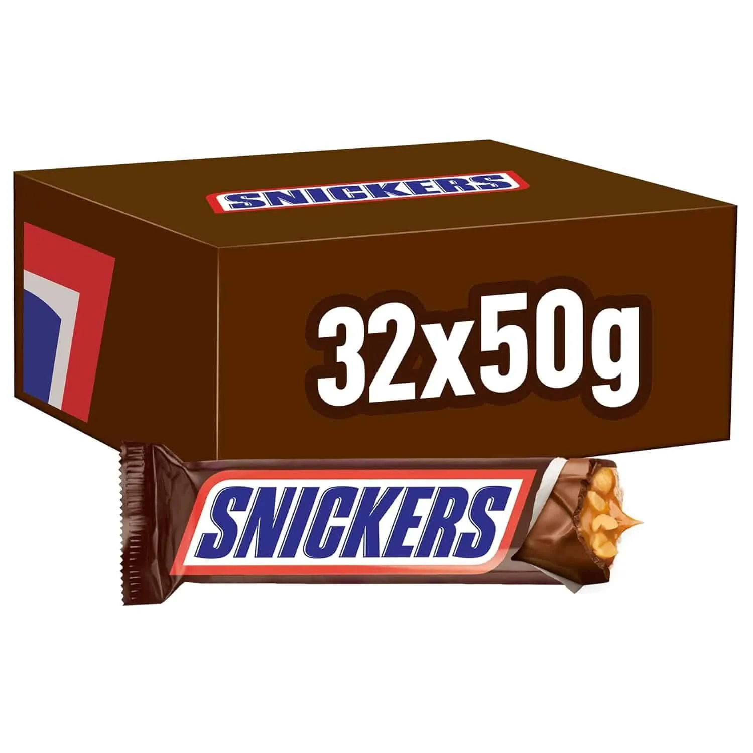 Snickers – der unvergleichliche Schokoriegel mit knackigem Erdnusskern, cremiger Karamellfüllung und umhüllt von köstlicher Milchschokolade. Jeder Biss bietet ein einzigartiges Geschmackserlebnis, das Energie und Genuss vereint. Mit 32 einzeln verpackten Riegeln ist Snickers ideal für unterwegs, als süßer Snack zwischendurch oder zum Teilen mit Freunden und Familie. Erleben Sie den unwiderstehlichen Geschmack von Snickers und lassen Sie sich von der perfekten Kombination aus Schokolade, Nüssen und Karamell verwöhnen.