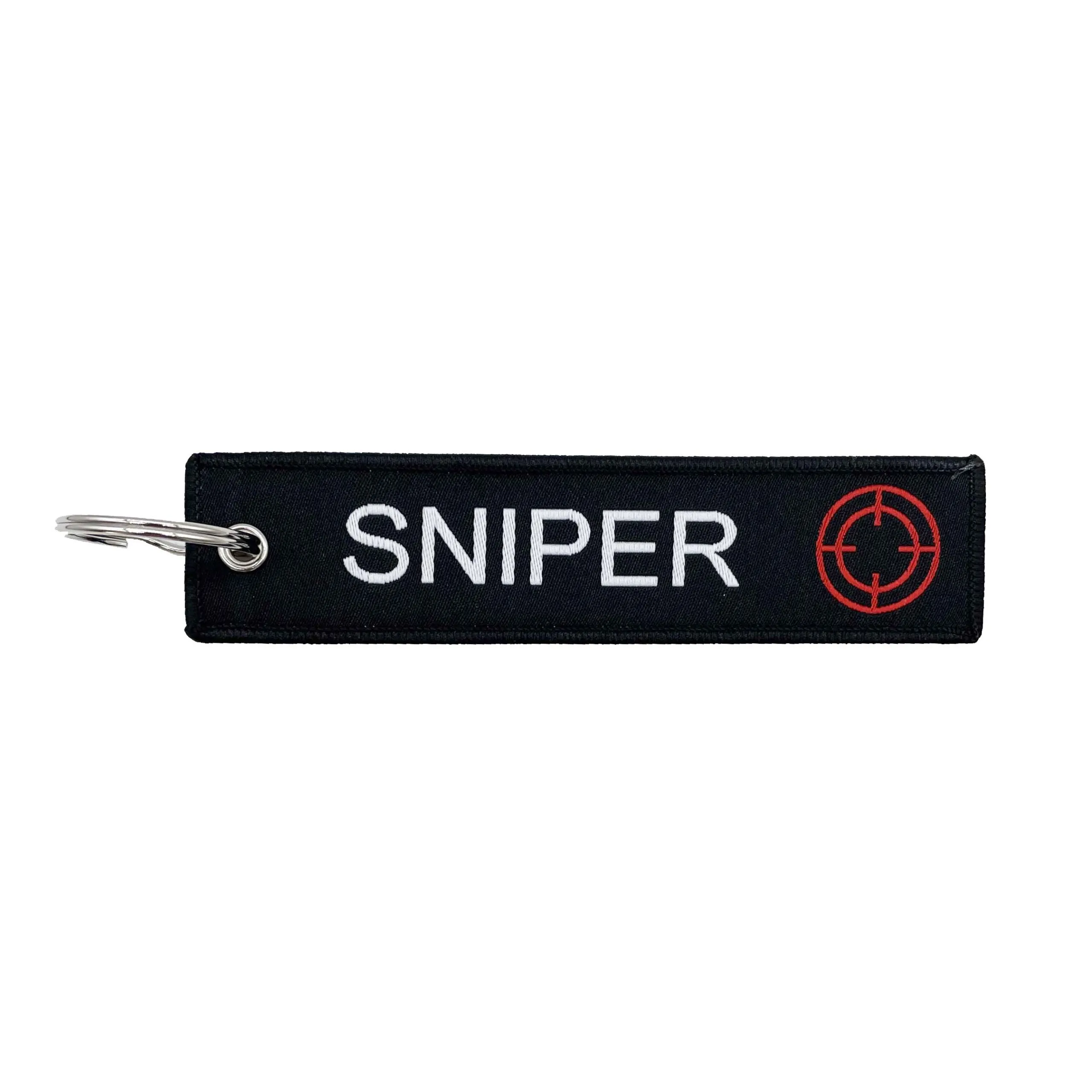 Gewebter Schlüsselanhänger mit beidseitiger Aufschrift “SNIPER“ und geketteltem Rand