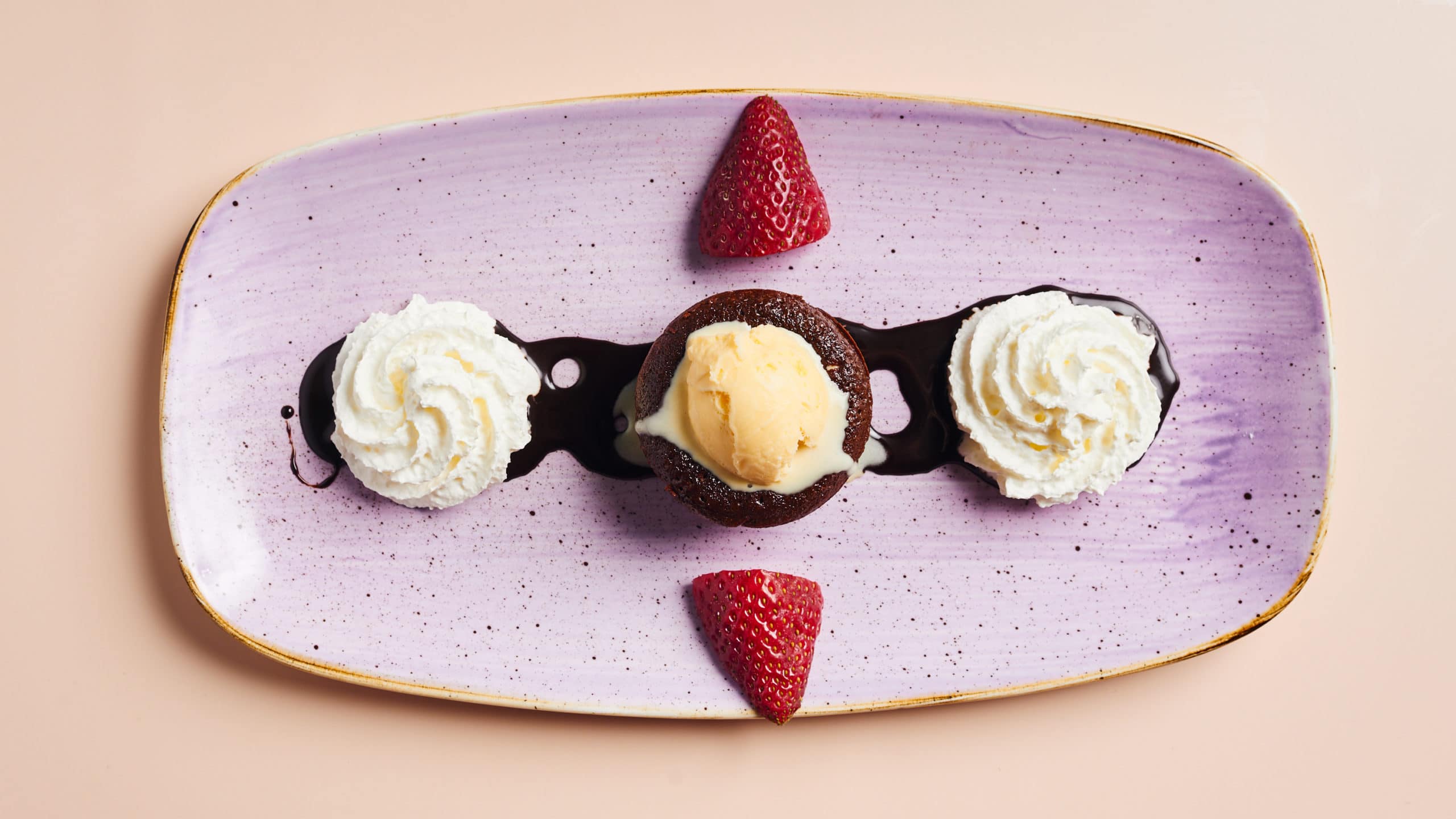 Schoko-Sufflé mit Vanilleeis und Sahne
