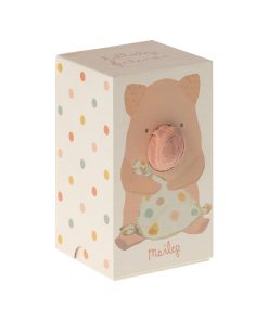 Spieluhr & Kuscheltier | Schweinchen | Höhe ca. 32 cm | 100% Leinen, Füllung aus recyceltem Polyester und Granulat | bei 30° C waschbar | Marke Maileg