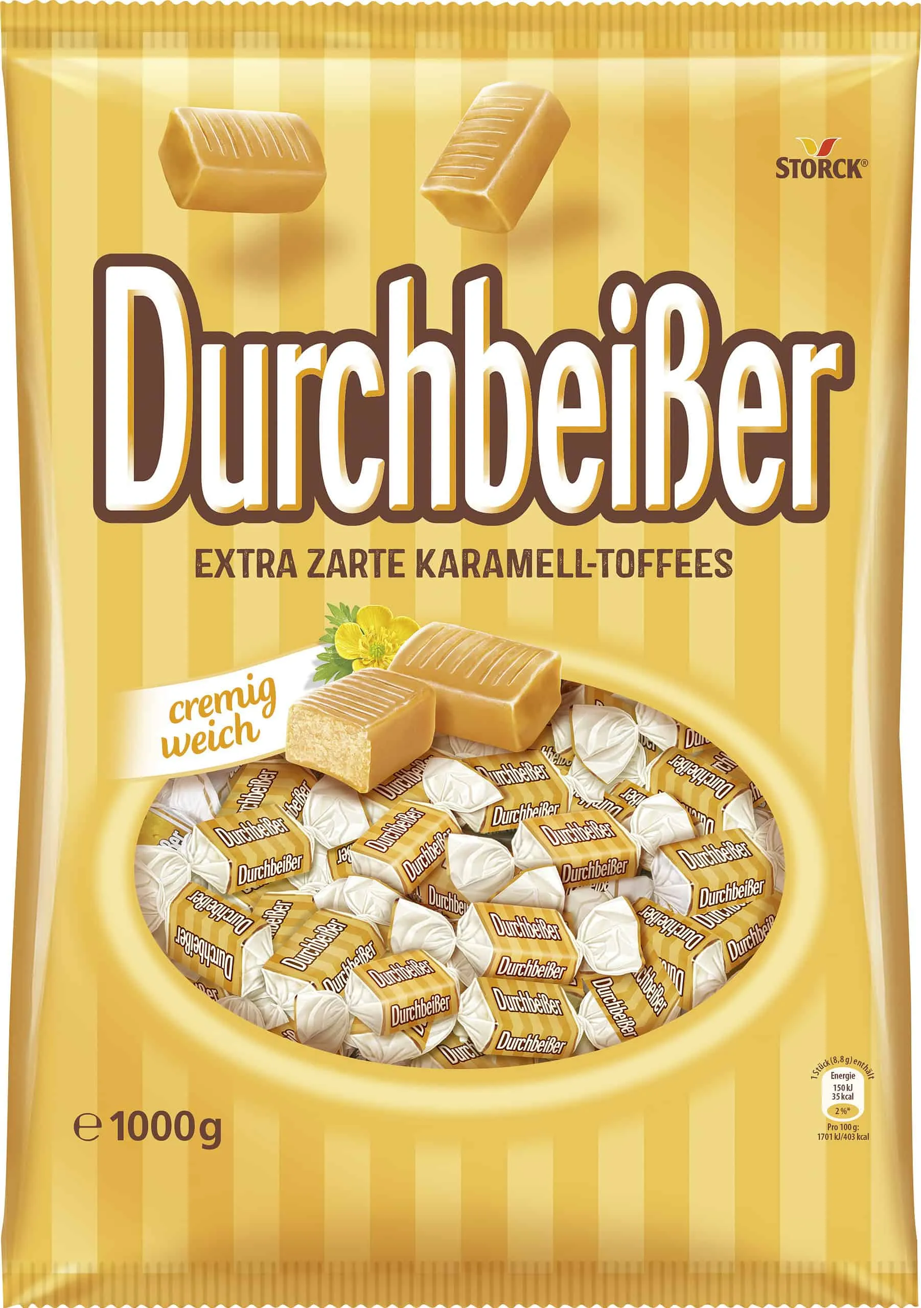 Storck Durchbeisser Caramel sind einzeln verpackte, extra zarte und weiche Karamell-Bonbons. Diese 1kg-Packung bietet einen großzügigen Vorrat an köstlichen Süßigkeiten von der renommierten Marke Storck. Die Durchbeisser Caramel vereinen cremigen Geschmack mit langanhaltender Freude für Karamell-Liebhaber.