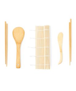 Sushi ist inzwischen schon lange kein exotisches Essen mehr. In größeren Städten gibt es an jeder 3. Ecke ein asiatisches Restaurant oder einen Lieferdienst der auch Sushi auf der Speisekarte hat. In diesem Sushi-Set ist alles enthalten was man benötigt um Sushi zu essen, und sogar genug für 2 Pesonen. Im Lieferumfang sind 2 Paar Essstäbchen, ein Löffel und ein Reispaddel – somit haben Sie sogar alles um selbst Sushi herzustellen. Packen Sie sich die Matte und lassen Sie Ihrem Geschmack und Fantasie freien Lauf. Die ersten Versuche sind meistens etwas wacklig aber nach kurzer Zeit rollt man spielend leicht sein eigenes Sushi.