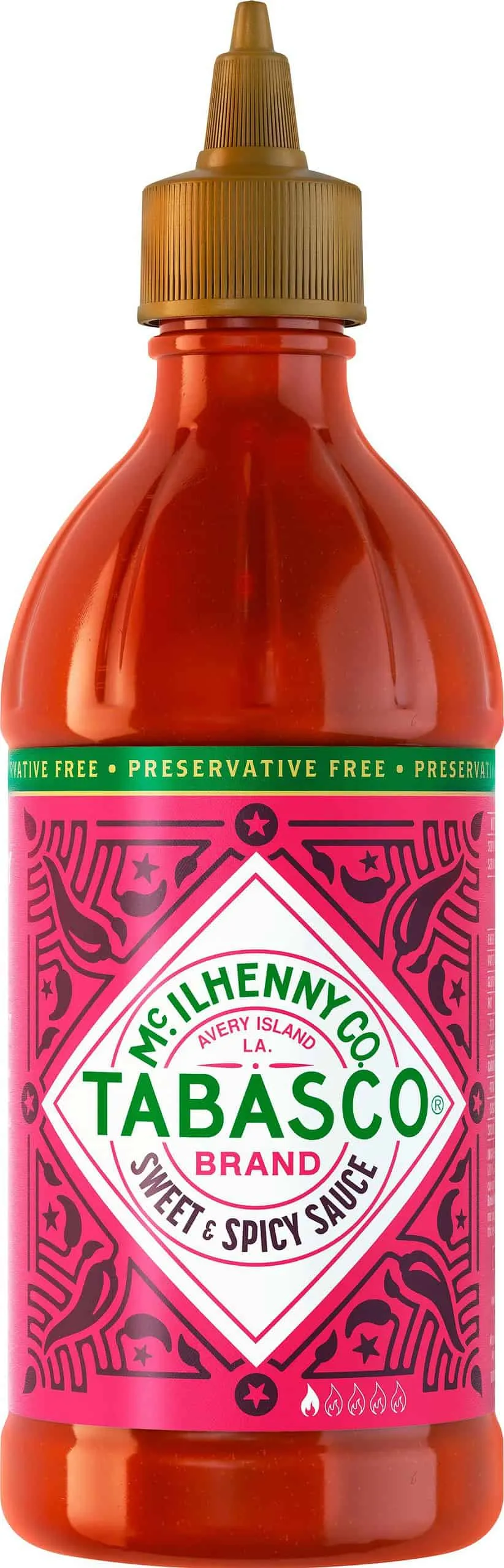Zutaten: Zucker, rote Chilis (20%), Wasser, Branntweinessig*, Birnenkonzentrat, Knoblauch, Zwiebeln, rote Chilisauce**(Branntweinessig*, rote Chilis, Salz); Ingwer, Salz, Verdickungsmittel (Xanthan), Gewürze. *AT: Weingeistessig **TABASCO® Sauce