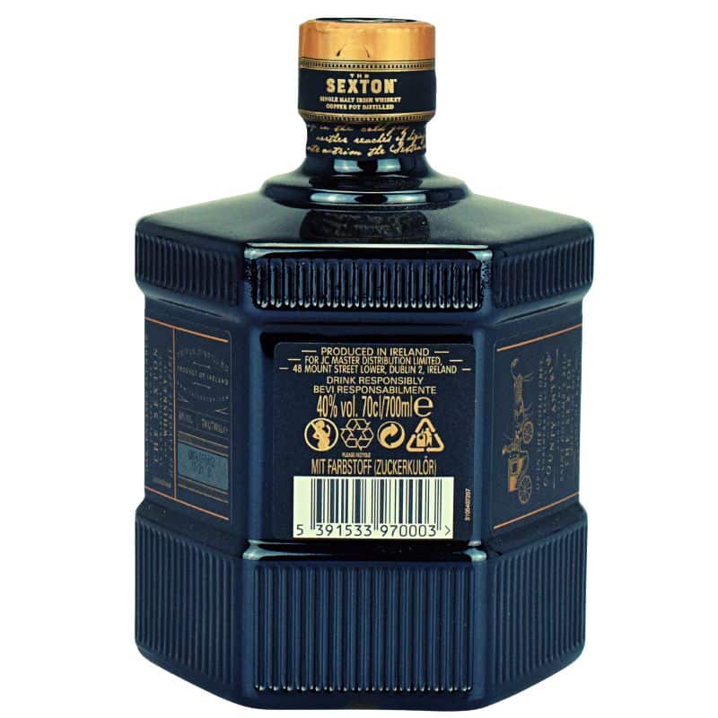 The Sexton Single Malt ist ein ausdrucksstarker irischer Whiskey, der in der berühmten Bushmills Destillerie in Nordirland hergestellt wird. Entwickelt von Master Blenderin Alex Thomas, zeichnet sich dieser Whiskey durch eine Reifezeit von vier bis fünf Jahren in spanischen Oloroso-Sherryfässern aus. Das besondere Flaschendesign, inspiriert von den Basalt-Gesteinen der Nordküste Irlands, macht diesen Whiskey auch visuell zu einem Highlight.